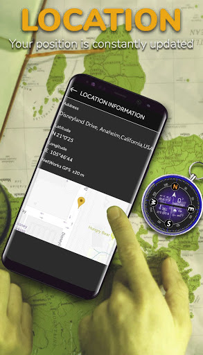 🎡See the compass app orientation precise compass in locations on the map - No position restriction