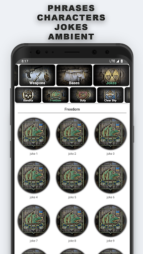 The app contains phrases of factions:
