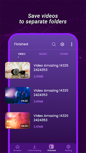 Video Downloader that allows you to download videos & music from web sites directly into yours device, so that you can open them every time without internet traffic.