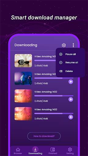 * Full-featured download manager to pause, resume and remove downloads
