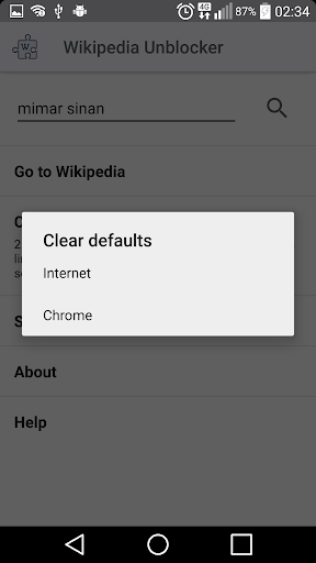 You should clear defaults of your browser from settings to open Wikipedia pages with this app.