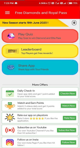 Free Diamonds and Elite Pass Play Quiz Is Good App This App Provide Free Diamond & Free Elite Pass,