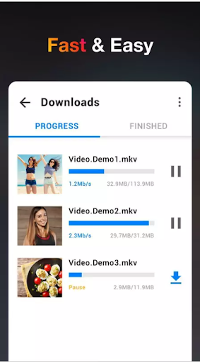 VidMedia Video downloader app and you just need to click the video download button. You can also play or remove downloads as you like. Our vidmad video download app supports multiple video downloads for you. With the fast downloading speed, You can easily download all HD videos in all formats. Vidmedia app is video playback tool that helps you to play all music and video files with smooth features.