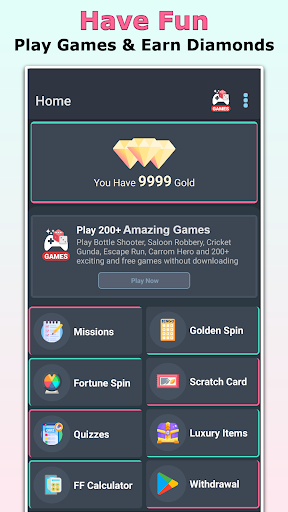 This App is the ultimate diamond and elite pass earning app for Fire and Max. Win rewards by playing games and completing daily missions.