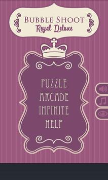Bubble Shoot Royal Deluxe contains 3 game modes: Puzzle Game, Arcade Game and Infinite Bubble. The Arcade Game and Infinite Bubble contain special bubbles like the fire ball, iron bubble, rainbow pearl, bullet bubble or bomb bubble.