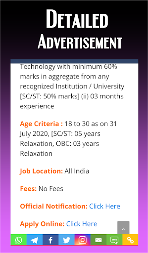 🥳🤩 Get daily free job alert on your mobile about all sarkari naukri and sarkari results. We always provide all detailed advertisement on our app only, so that user can easily understand in one go. You can easily find your jobs on our app such as IT jobs, Accounting Jobs, Finance job, PSU jobs, Govt Jobs, PSC jobs, Clerical Jobs.
