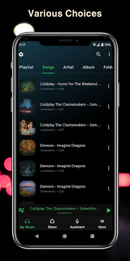Music player, mp3 player find all song formats quickly. Music player app can play all formats of music files.