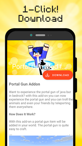 We design this app to make it easy to download & install Minecraft Portal Gun Addons into your mobile device. With 1-Click installer, everything will be done in few seconds!