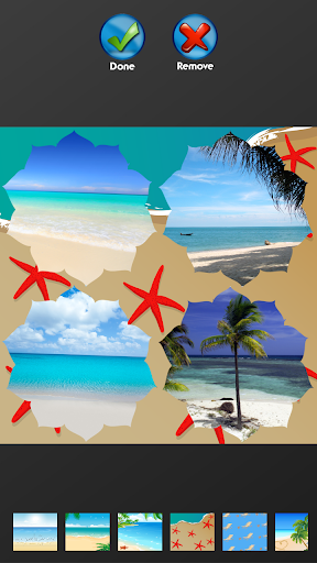 After you finish that, check out stunning backgrounds, frames and stickers that we have prepared for you and decorate your photo collage in the best possible way. What do you think of background where you can see two sea stars on the sand? The sea slowly washes the shore and there are palm trees on the island as well. This scene will remind you of your last vacation and it will give tropical spirit to your images. You can use the newest ▲Beach Photo Collage▼ to decorate pictures from the seaside, or any other occasion, and it’s certain that you will have the best experience with it. As for the frames and stickers, you can find lots of sand, palm trees, as well as seashells in the latest ▲Beach Photo Collage▼, so check out all of them and express your creativity. You are only few swipes away from all of that, so don’t hesitate and download this top photo editor right now!