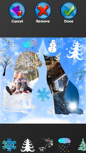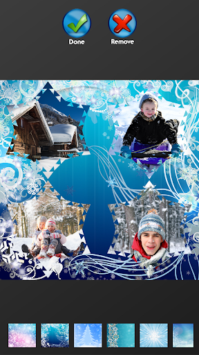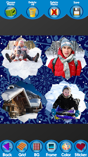 be a reminder of the good times you had. Small moments make the most amazing stories, so make sure that you fill your life with those worth talking about, and save them from oblivion by taking pictures. The latest ▲Winter Photo Collage▼ is very easy to use and it won’t take a lot of your time. You should first choose what photo grid you’re going to use, so scroll through the long list of them and find the one you like the most. If you are the type of person who likes unusual things, then you will certainly like photo grids with cool shapes such as flowers, stars and animals that the newest ▲Winter Photo Collage▼ has to offer. Once you select your favorite one, go to your photo gallery and select as many pictures as you need. Drag them to desired positions and make a perfect layout.
