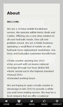 We are a 24 hour mobile breakdown service. We operate within Herts, Beds and Cambs. Offering you a one stop solution to all your hydraulic needs. One call and problem solved. We are a family business operating a small fleet of mobile on-site hydraulic hose replacement workshops. Ace Hose and hydraulics customers benefit from