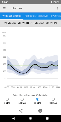 * Zie glucose-rapporten, inclusief dagelijkse patronen en tijdsperioden op het doelwit
