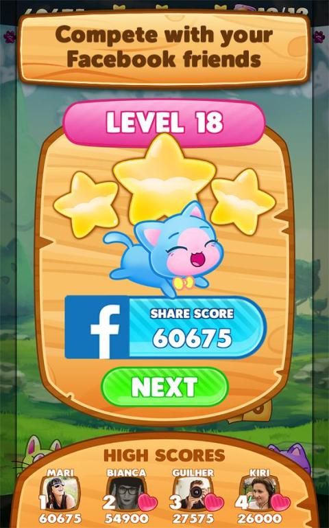 Kitty Pawp is an exciting new bubble shooter that’s all about cats! Match balloons of the same color to earn points. Collect treats, earn prizes, or clear balloons to complete different goal-based objectives and unlock new levels. Avoid getting stuck behind Hairballs or having to change the Kitty Litter! Explore vibrant and colorful cat-themed worlds. Claw through the competition and pop your way to the top of the Facebook leaderboards.