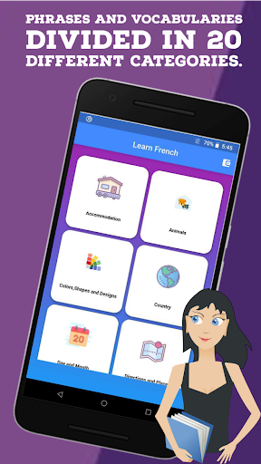 The Learn French - Speak French app helps you to learn French by learning core words and phrases. Lessons are divided into various categories to make the learning simple. Start with basic words and sentences and learn new words daily. Save your favorite words or sentences for later review