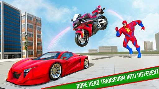 Transform flying superheroes into robot cars and robot bike to take down the enemies and defend grand city from evil robots in robot transformation games crime city. Utilize incredible robot transforming ability, transform Spider rope hero into car and bike & fight against mafia. Prove yourself as an ultimate spider rope superhero and use different strategies & tactics to emerge out as victorious.