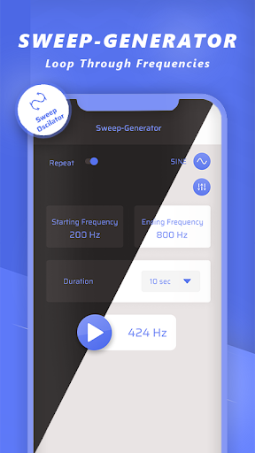 You can create sounds from low frequency to high frequency, Ranging 0Hz - 22KHz with handy controls and multiple frequency generating options.