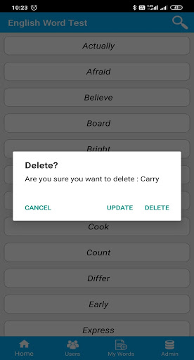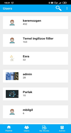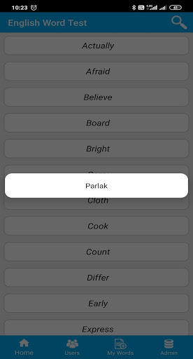 English Word Test uygulaması ile istediğin kullanıcının kelimesini görebilir ve onun kelimlerinden kendini test edebilirsin. Bu şekilde ingilizce öğrendiğin kelime sayısını artırabilirsin.