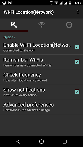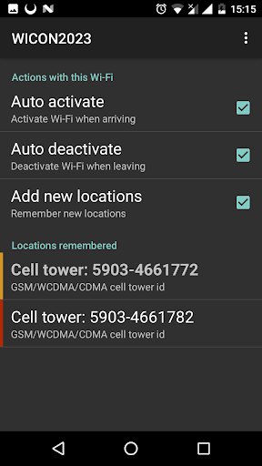 Location(Network) detects and learns automatically locations where you are connected to a Wi-Fi, not needing much configuration. It also allows you to manage manually your Wi-Fi when needed not interfering with you or with your device data connections.
