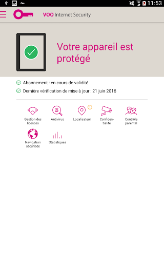 VOO Internet Security – l'antivirus et la sécurité Internet protègent l'intégrité de vos informations personnelles sur votre tablette ou votre smartphone Android.