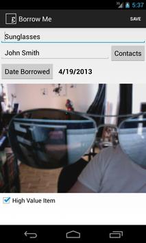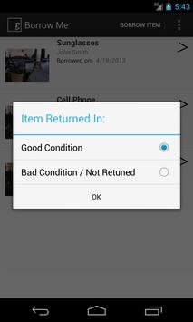 Borrow Me is an app to keep track of things you've borrowed or have borrowed to other people. It allows you to see when an item was borrowed, a picture of the item if you have chosen to take one, and of course who it was borrowed to.