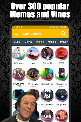 This is the "Gold Version" of the free "Meme and Vine Soundboard". It is completely ad free and includes additional features like the favorites tab and the search bar. It also contains 4 new categories and more than 100 additional sounds.