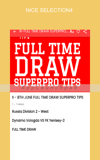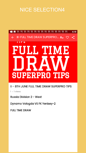 FULL TIME DRAW SUPERPRO TIPS as the name implies provides you four games selections of full time draw in 90 mins.