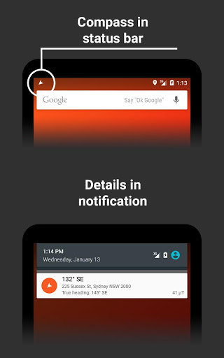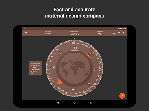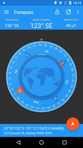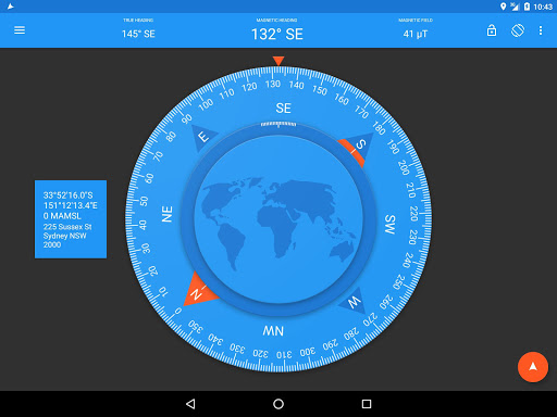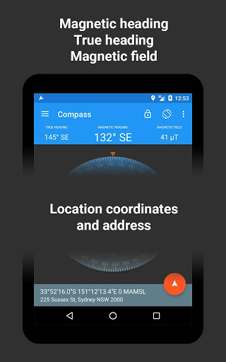 • Displays magnetic heading, true heading, magnetic field, location and address.