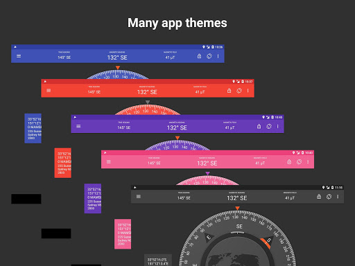 • Colorful themes - personalize the look of your compass.