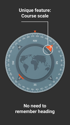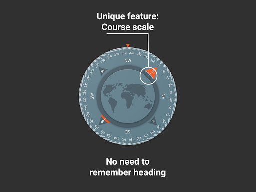 • Unique feature "course scale". Enables you to mark your preferred azimuth and determine your return direction.