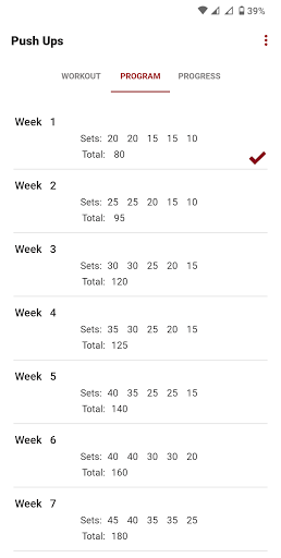 It is necessary to perform the required number of push-ups in total for 5 approaches.