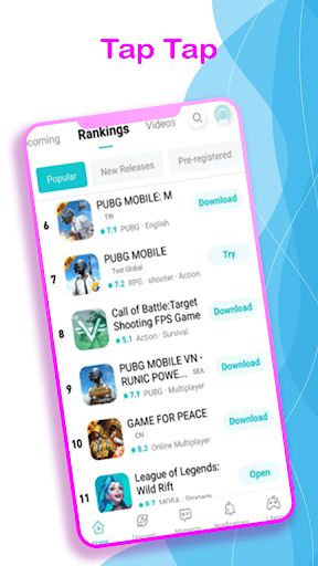 It shows you where you can find games trending list like tap tap pubg and more games.