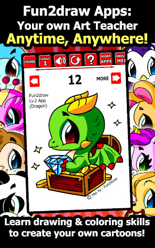 Designed by Canadian artist and Fun2draw creator Mei Yu, Fun2draw Lv2 offers super easy step-by-step drawing, coloring, & shading skills to turn simple shapes into beautiful, exciting cartoons, pets, and animals! Learn awesome tips & tricks from this cartoon art instructor to create your own cartoons in no time!
