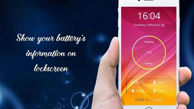 - Displays information about the battery in the lock screen, the percentage of remaining battery, battery health, battery voltage and battery temperature outside the lock screen lock screen gorgeous.
