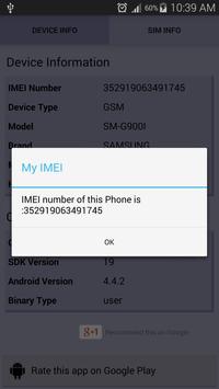 Device Details: IMEI Number, Device Type GSM/CDMA, Model Name, Manufacturer, Brand, Hardware Info.