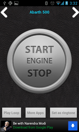 - Click on the start engine button to play sound. Use the arrows to change the sounds. Click on play loop to play the sound in a loop.