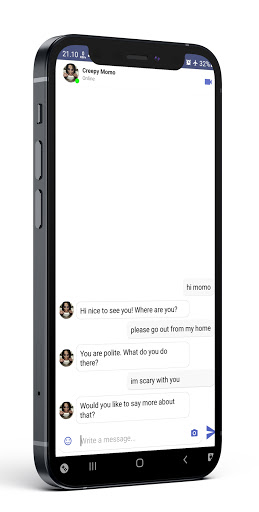 you will make a direct call with a very scary creepy momo, call momo and chat makes you feel like you are communicating directly komunikasi