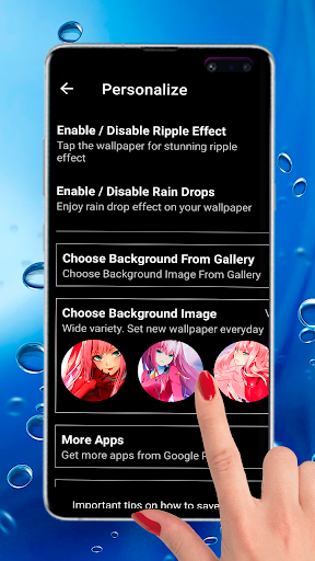 Today we offer you cute set of 4K live wallpapers with water ripple effect! There are imaged pretty girl Zero two!