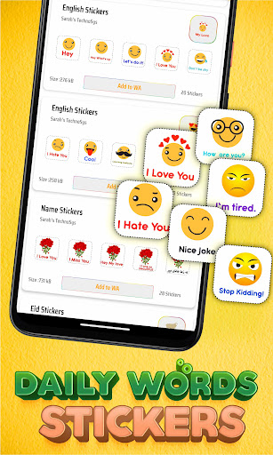 Make your WA messages and status look colorful and funny using this urdu stickers for Whatsapp. This Funny Urdu Stickers and Funny Emoji Sticker app for WA will allow you to have access to a great collection of stickers in so many categories. You will find a significant number of fun stickers. From this Funny Urdu WASticker - Urdu memes stickers you can share urdu funny stickers, Islamic stickers, emoji text stickers and flower text stickers english stickers on one click. Stickers are best way to send some funny, love or emotional messages. Stickers can change the mood of your loved one and friends. New funny stickers app help you express your emotions in a fun and creative way. Here you will find stickers for WhatsApp with text, cute animals, hearts. We created emoji with text, emoji in love. Here you will find daily stickers with good morning, good night. New stickers are permanently added to this sticker app. WASticker Stickers and emoji is your personal love stickers chat for in your daily conversations powering you with large and carefully choosen emoji stickers and romantic stickers collections for WASticker including Love and relationship stickers and couples love stickers. This app contains urdu text on flowers , urdu text on emojies and urdu text on vagitables. You can share all your expressions in different ways. You can share daily use words in english and urdu stickers also we have large collection of eid stickers. We have a spacial collection of eid stickers and you can share it in your way. You can share eid greatings and eid ul azha stickers from this stickers for WA app.