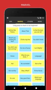This app consists of the best statements and tones from Brooklyn Nine-Nine, Marvel movies as well as funny tones. From Holt's Hello, to the quirky Tony Stark's comebacks. This app has got your back.