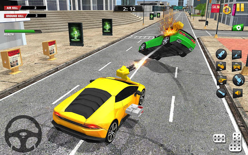 Now its time to Enter to the 3D crazy shooting rivals and shoot the huge realistic driving vehicles and shoot with your best gun with long shooting range rocket launcher and machine guns equipped with latest tools show your crazy deadly riding and attacking skills in this extreme flying shooting car-simulator and flying car games
