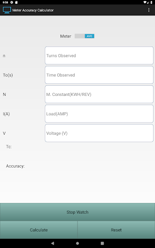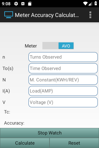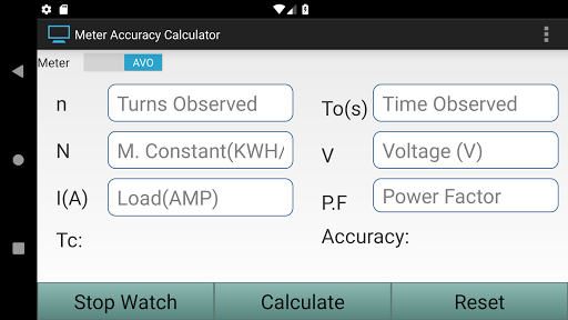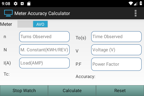 Enter Value of "V", "I" in case of AVO Meter and Value of "P" in case of Watt Meter