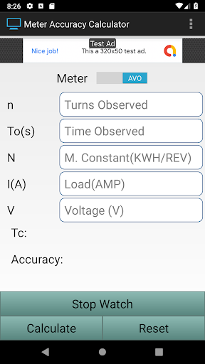 Press "Calculate" Button for calculation of accuracy of energy meter