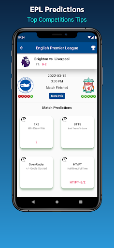 Futball Predictor is the best way to get daily football predictions, tips and results & stay up-to-date with the latest stats, matches and more! Over 10,000 football matches and leagues including the Premier League, Champions League and Europa League are available at the touch of a button.