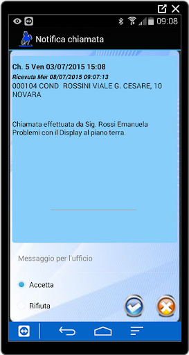 Viene subito eseguito un controllo per verificare se dalla procedura Gimi .Net sono state inviate chiamate al tecnico. In tal caso egli riceve una notifica con la possibilità di visualizzarla, accettarla o rifiutarla.