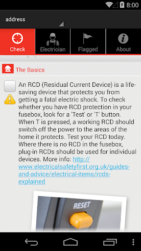 This app was designed by Electrical Safety First to help keep you and your family safe by using a simple checklist to look out for potential dangers in every room.