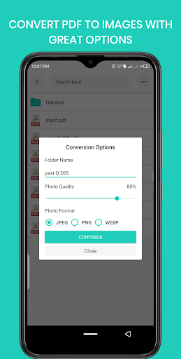 is free app for you to convert your PDF files to the JPG/PNG/WEBP images. You just needs to pick the PDF document then select the pages you want to convert. The PDF document will then convert to images within few seconds without delay in conversion. It can be use as pdf to jpg converter, pdf to png converter and pdf to webp converter.