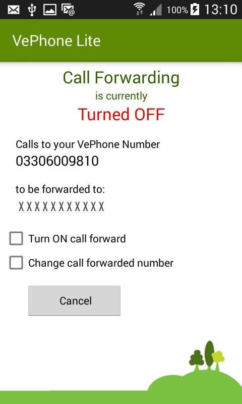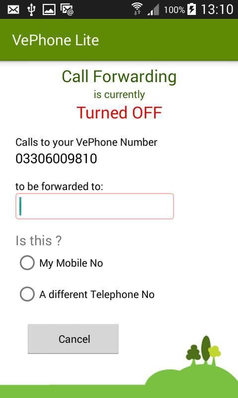 Call Forwarding:- You can be physically located in any country in the world and use VePhone Lite to instantly "Call Forward" all calls from your VePhone to any landline or mobile worldwide, including to your own mobile if you so wish.