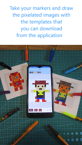 - Print directly on your paper printer the templates to create the drawings. They can be blank templates or with numbers that represent the colors (Color By Number but on paper). Print and use your markers to draw with the help of Pixel Craft