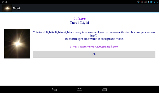Android Jelly Beans (JB) and older versions have limitations in torch light that when they turn Off screen light, the torch light also turns off and when they try to use any other app when torch light is ON, the torch light closes automatically.