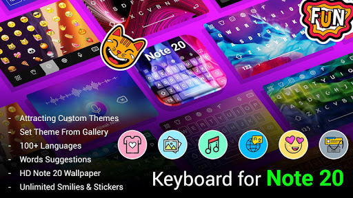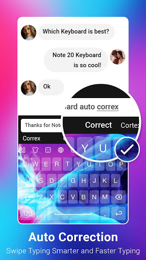 ⇒ Choose from the Free Keyboard Theme Center what you love: Blue Galaxy Note 20 Keyboard, Sleek Bright Lights Keyboard Theme or Luxury Note 20 Ultra Typewriter Theme.